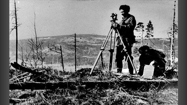 Маркшейдеры за работой. 1960г Изображение. Точная дата неизвестна, ориентировочно 1960 год