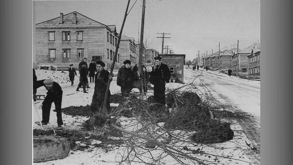 Погрузка строительных материалов январь 1958г.