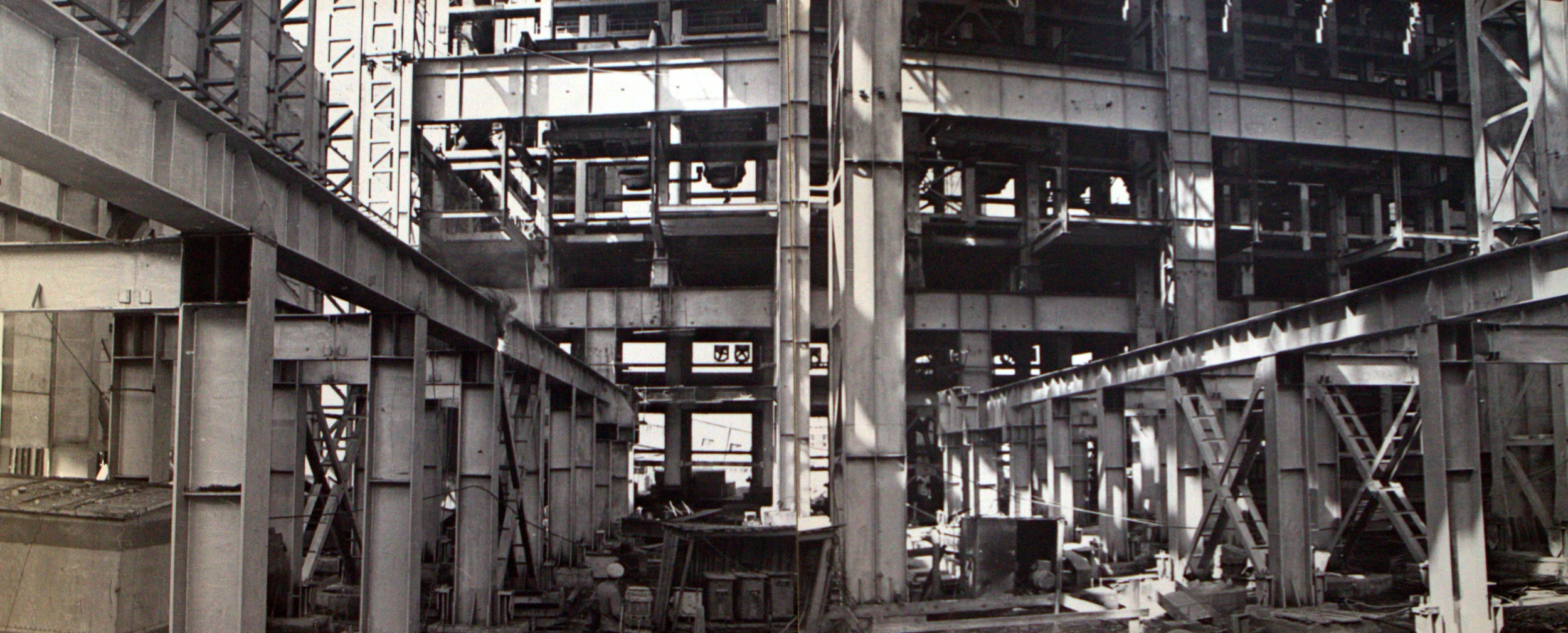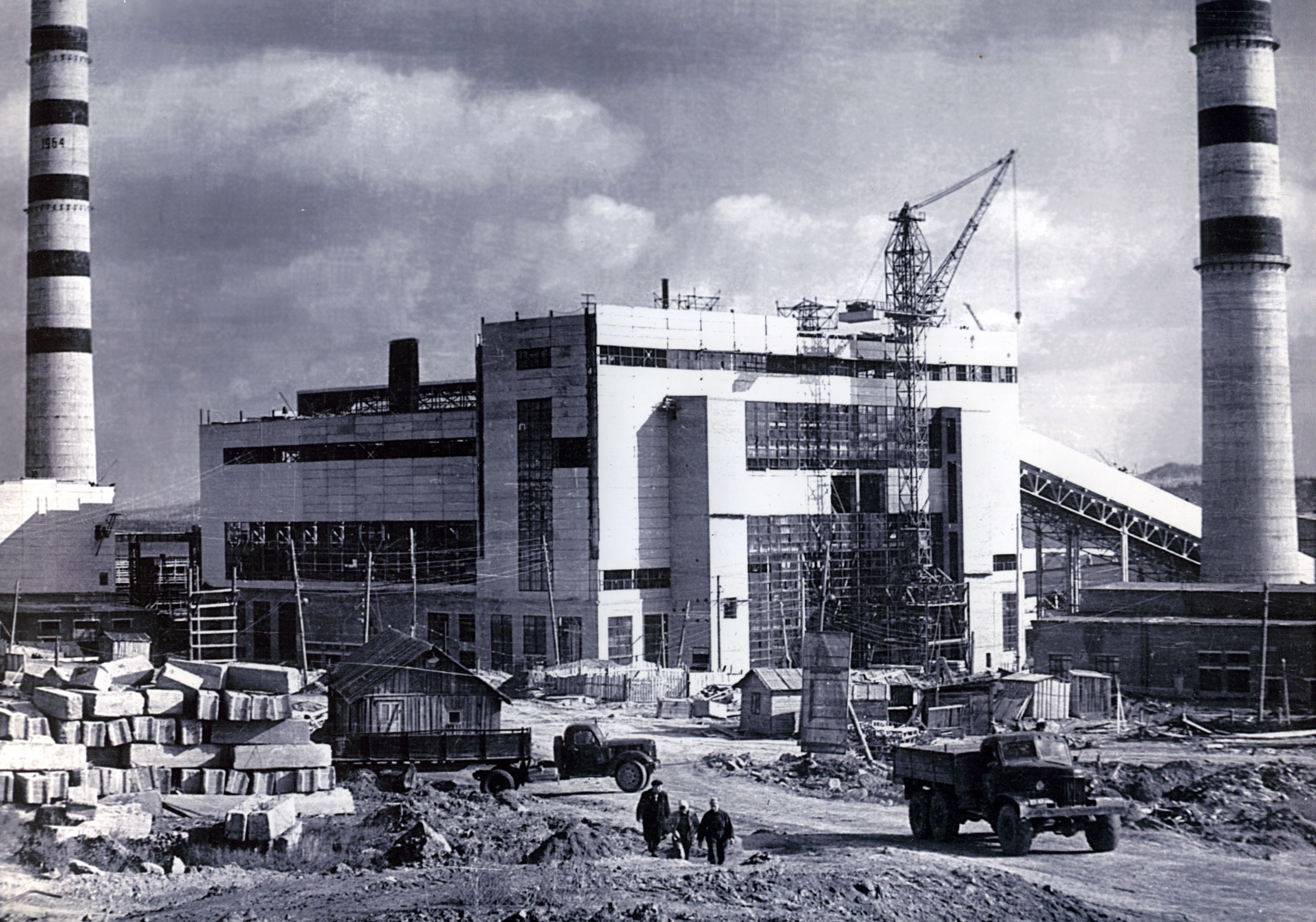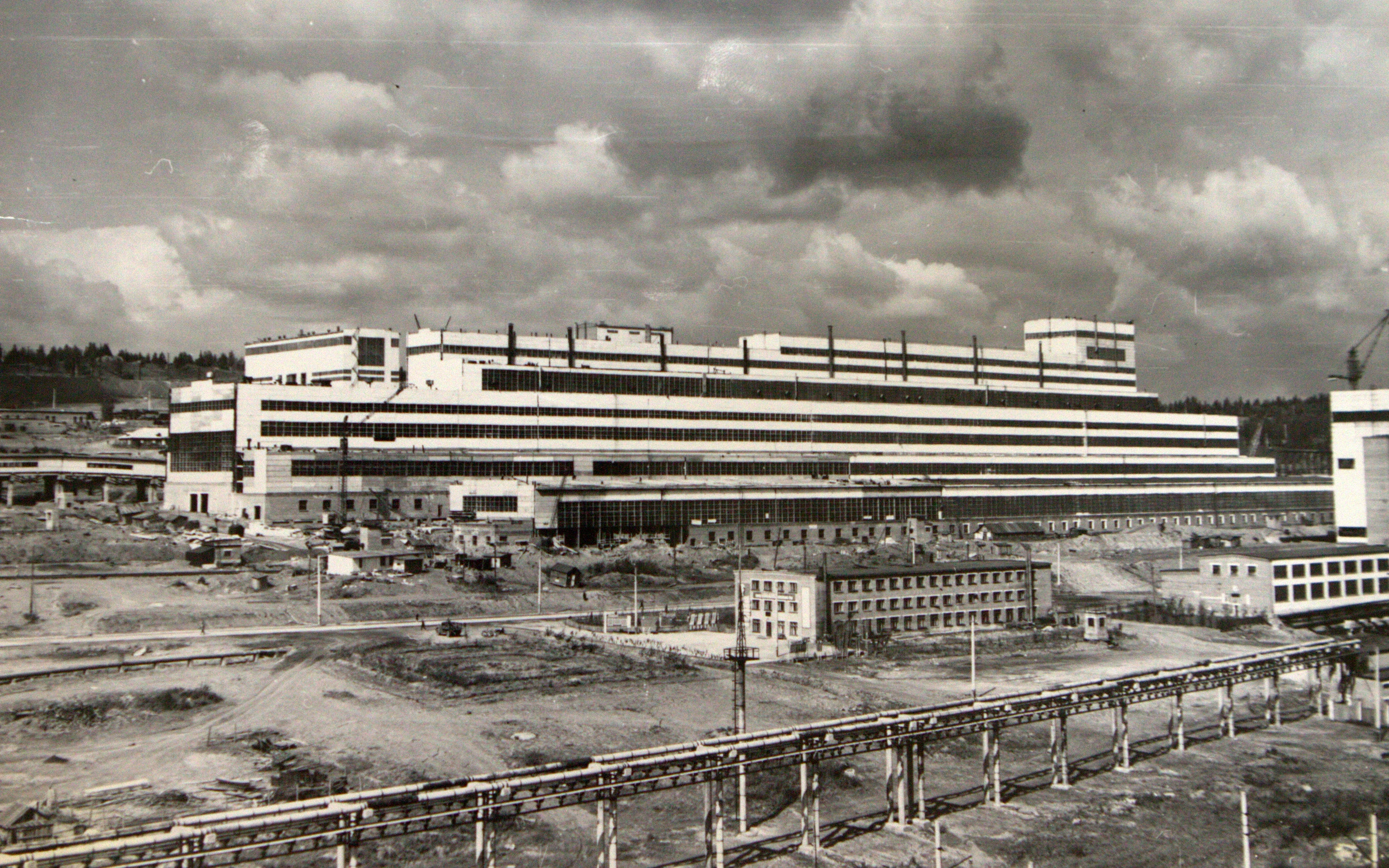 Корпус агломерации в стадии завершения строительства 1964г.