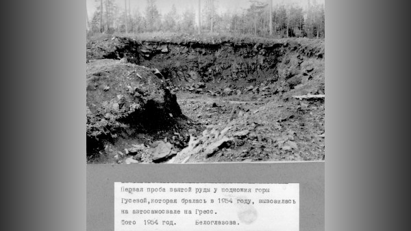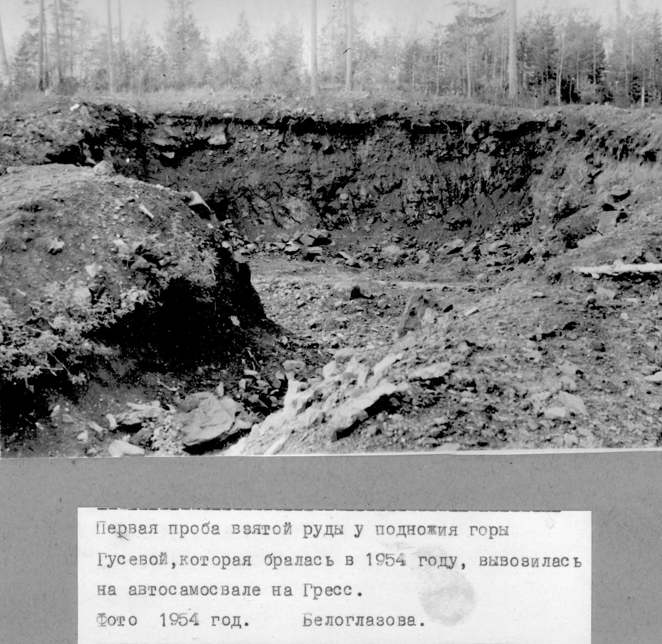 Качканарская ГРЭ. Первая проба взятой руды у подножия горы Гусевой, которая бралась в 1954 году, вывозилась на автосамосвале на Гресс. 1954г