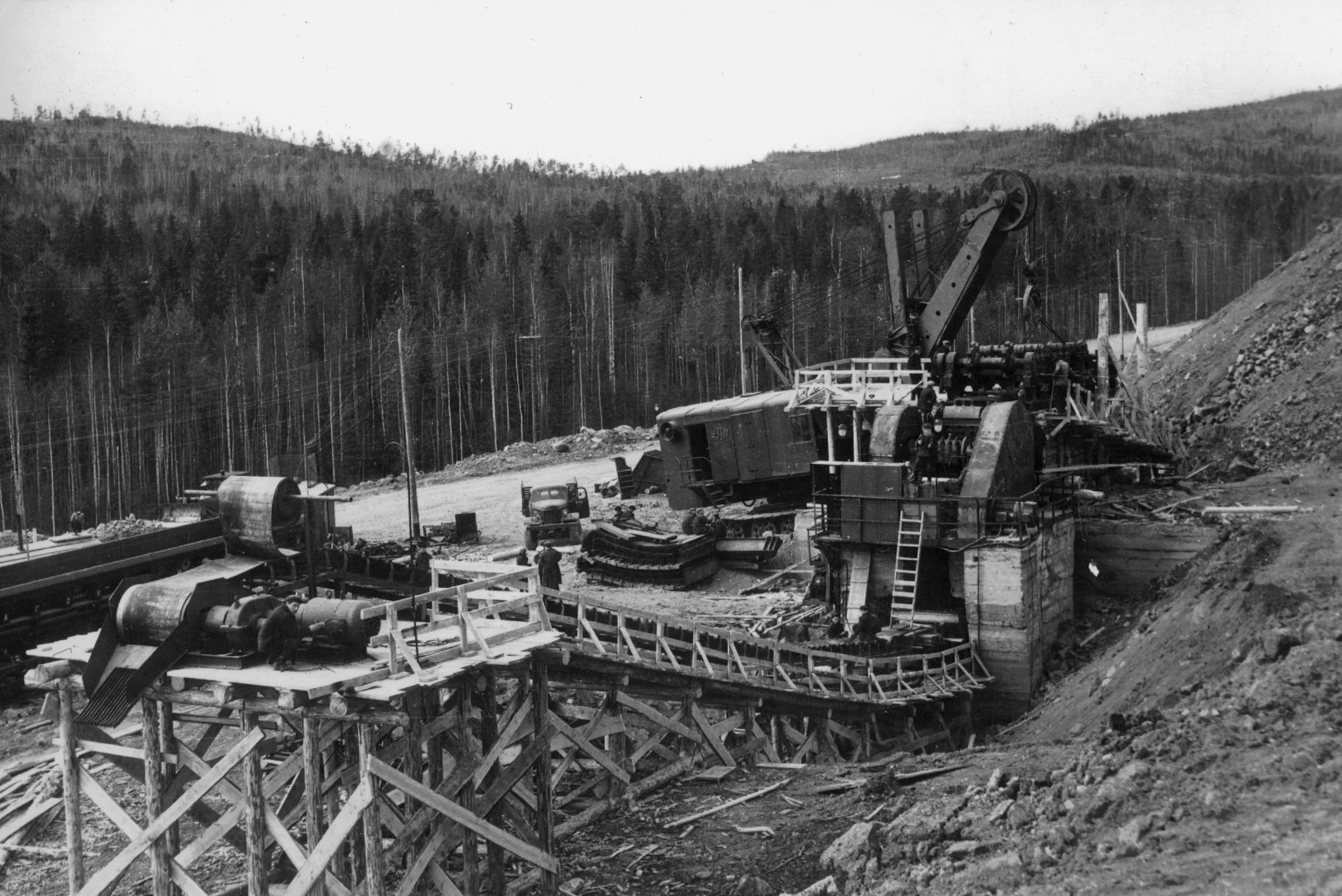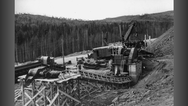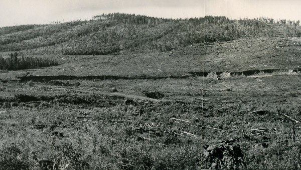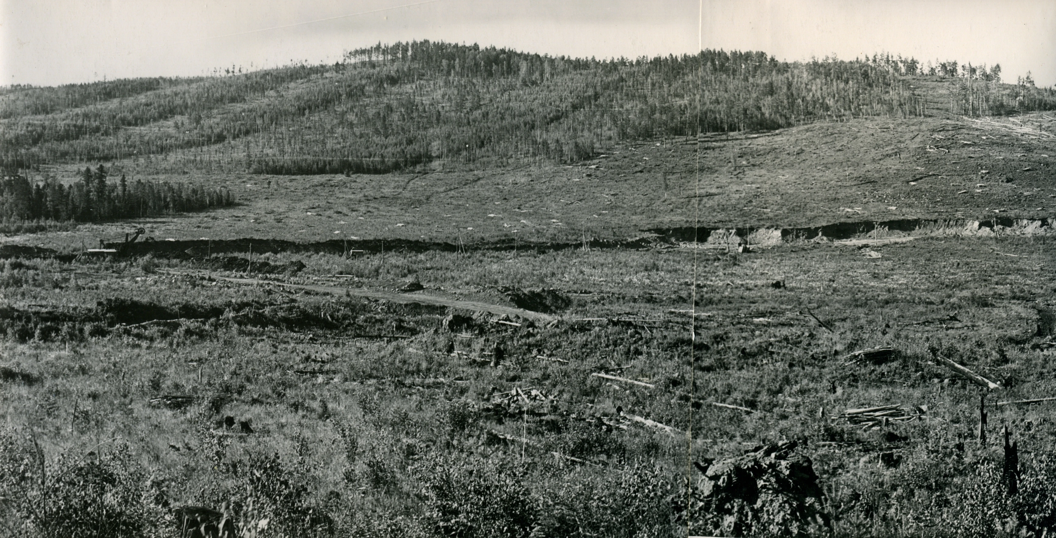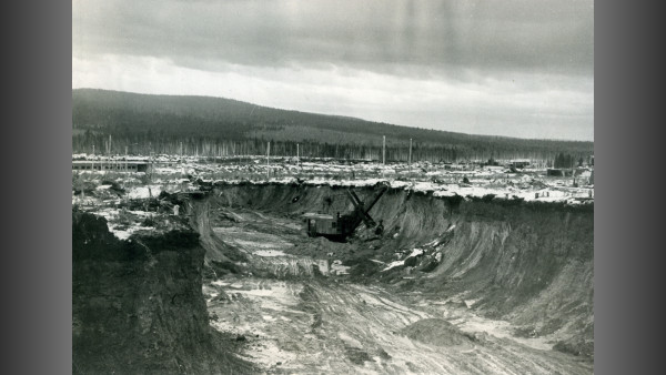 1959 год. Вырубка леса на месте будущего Главного карьера.