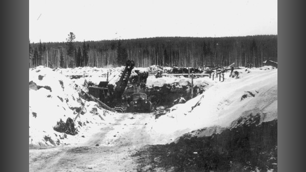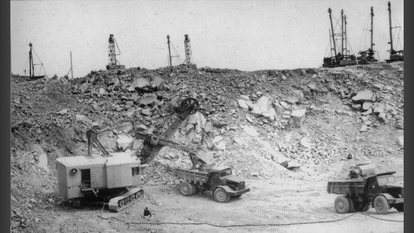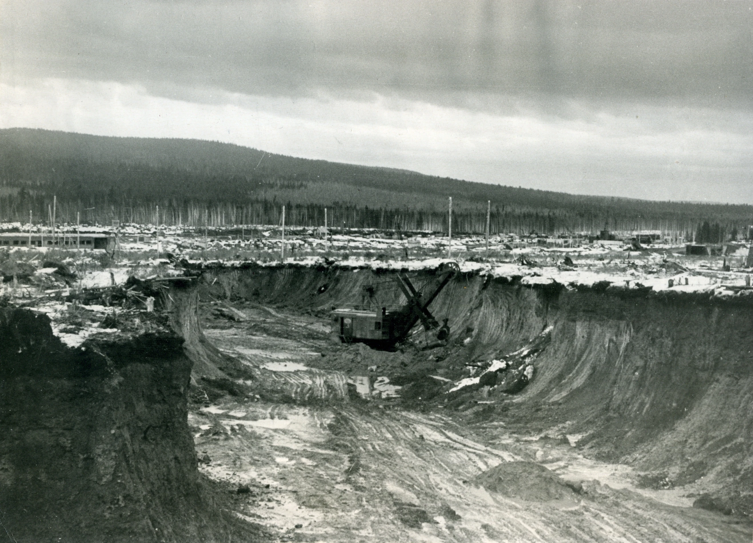 1959 г, ноябрь. Копается котлован под строительство обогатительной фабрики.