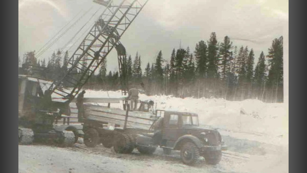 Погрузка железобетонных плит январь 1959г.