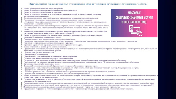 Перечень массово социально значимых муниципальных услуг на территории Качканарского муниципального округа