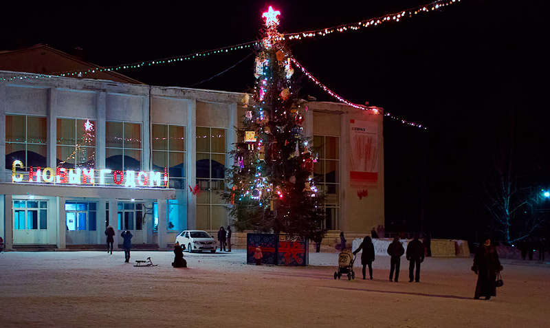 Вот висели 8 снежинок (5 на ДК и 3 на ...флагштоках) и по ул. Свердлова от магазина Огонька висели гирлянды. Проезжаешь по Свердлова и сразу видишь что праздник.