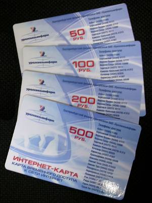 В продажу поступили карты временного доступа в интернет через Уралсвязьинформ. Номиналами в 50, 100, 200, 500 рублей. Приобрести можно в центральном переговорном пункте. Для использования карты не нужна регистрация в Уралсвязьинформе: временные имя и пароль написаны на самой карте.