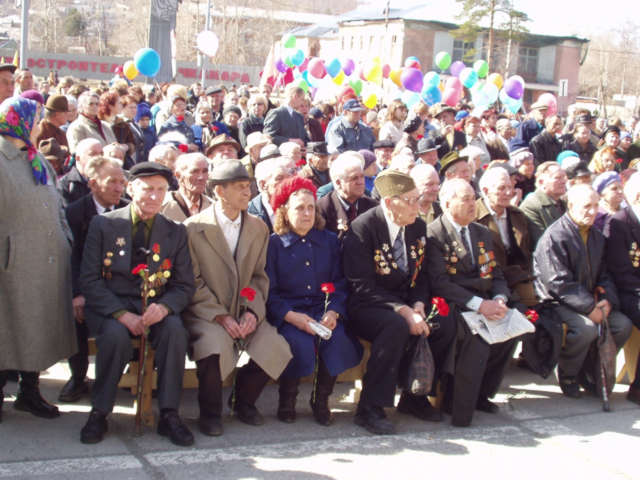Началось все с праздничного шествия, затем последовал митинг на административной площади, в центре которой был организован своеобразный зрительный зал. Всего лишь на пяти рядах уместились наши герои, главные виновники торжества - ветераны. С каждым годом очевидцев тех далеких и страшных событий становится все меньше и меньше, а потому так важно хотя бы в эти дни отдать дань уважения и признательности этим пожилым людям.