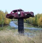 Сей образчик современного искуства стоит у дороги на 6-е сады. Как говорят, уже не первый год стоит, а я вот совершенно об нем не знал. :( Поэтому - внимание!