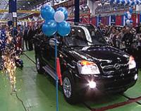 Торжественный пуск нового сборочного конвейера легковых автомобилей состоялся сегодня на заводе "Автомобили и моторы Урала" /АМУР/, в городе Новоуральск Свердловской области. Первым легковым автомобилем, собранным на Урале стал китайский внедорожник "Лэндмарк".