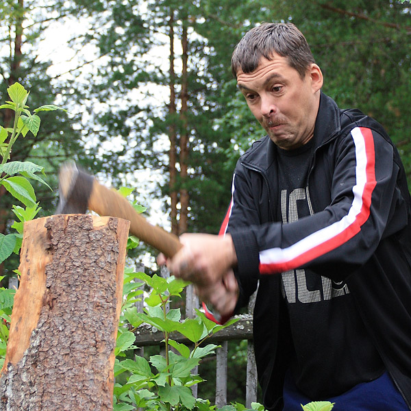 С таким усилием и топор не нужен)